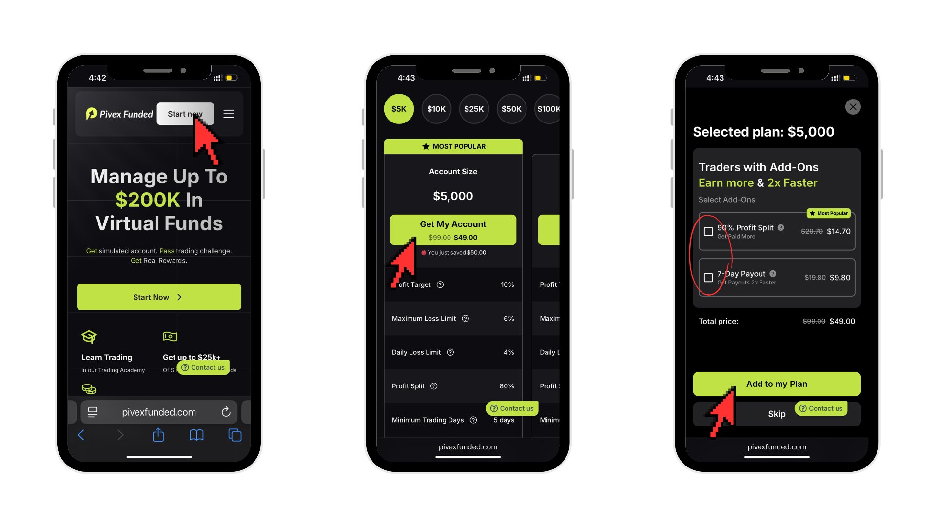 pivexfunded.com.Select Your Preferred Account Size that suits your trading goals.