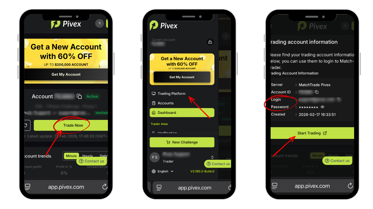 If you experience any issues logging in or accessing your MatchTrader account, feel free to contact our support team via live chat or email at support@pivex.com, and we’ll assist you in resolving any issues.